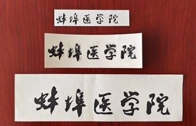 学校原绘图室绘图员赵焕英老师回忆起这段往事,说道:“我当年在绘图室专画教学挂图。一天,学院办公室龙云彩叫我给学院大门口校牌换个新的,是郭沫若的字。当时,郭老写的是5个横字,写在一个信纸上。字不大,墨也不是太黑。我就用幻灯机按学院门口大牌子尺寸放大、变成竖字,交给有关部门做了。不久,就换成新的郭老写的蚌埠医学院。”