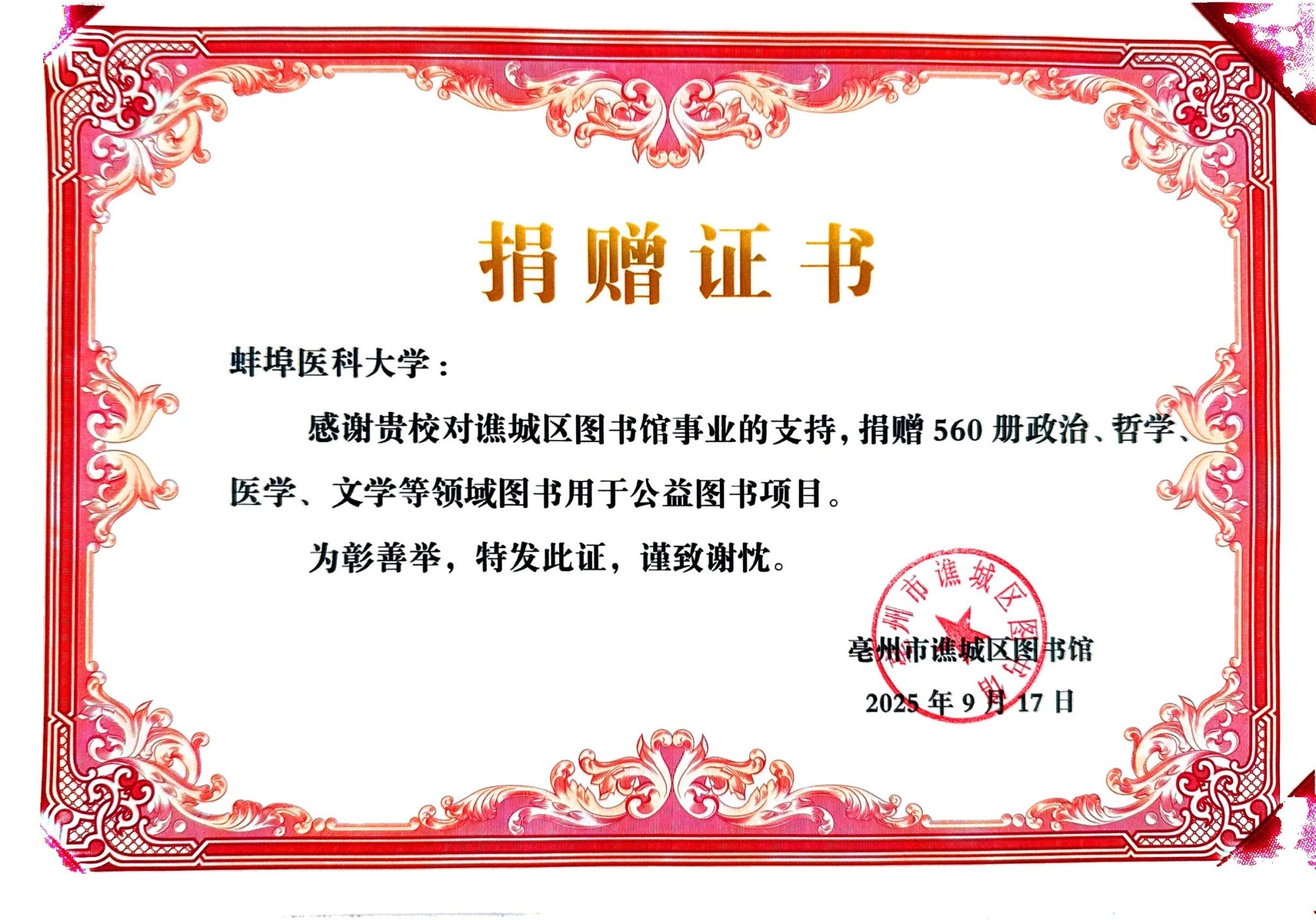 9月17日上午,学校向谯城区图书馆捐赠图书。此次捐赠图书560册,内容涵盖《习近平谈治国理政》等理论著作,慢性病防治指南、健康科普读物等,旨在助力提升基层群众健康素养与文化水平。