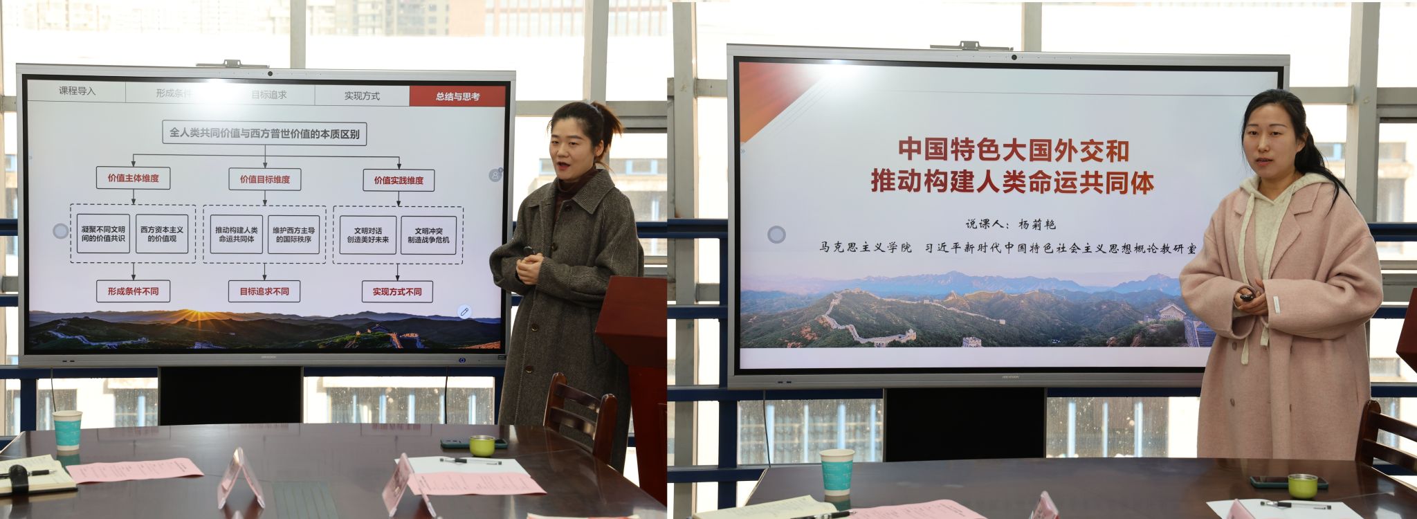 备课会上,青年教师曹莎莎围绕“全人类共同价值同西方普世价值的本质区别”主题,从价值主体、价值目标和价值实现三个维度进行了教学展示。青年教师杨莉艳就第十六章“中国特色大国外交和推动构建人类命运共同体”教学内容,以“析源—立意—破局—解题”的逻辑脉络进行了说课展示。吴雪龙、李国宏、卓玥等紧扣“党的二十届四中全会精神为何融、融什么、怎样融”核心问题,从导入设计、理论阐释、教学方法等多角度展开深入研讨。校领导认真观摩展示、听取研讨,对备课会成效给予充分肯定,并就持续提升思政课育人实效提出明确要求。