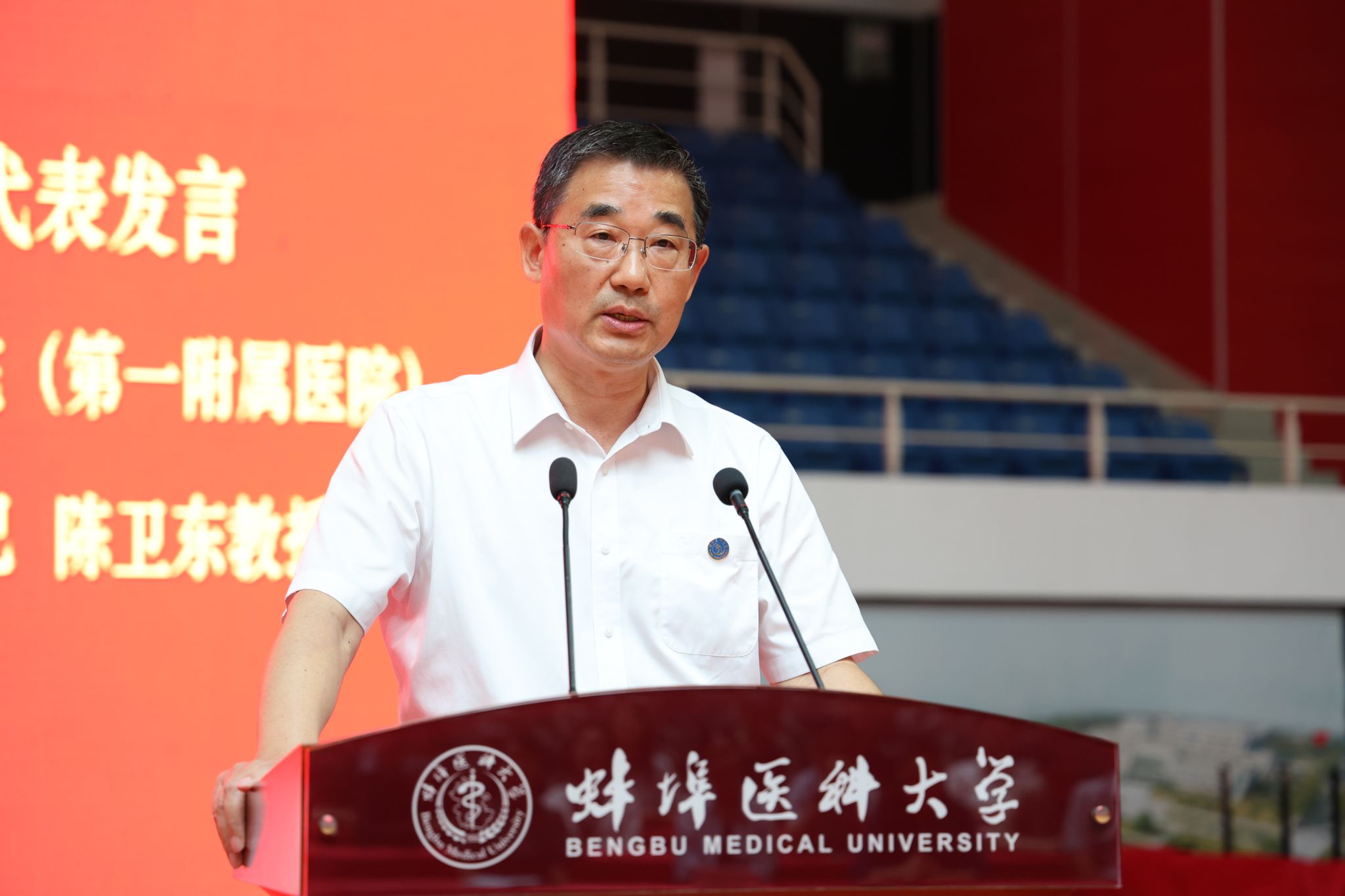 大会上,第一临床医学院党委副书记陈卫东作为教师代表发言;第一临床医学院葛畅同学代表2025级新生发言。