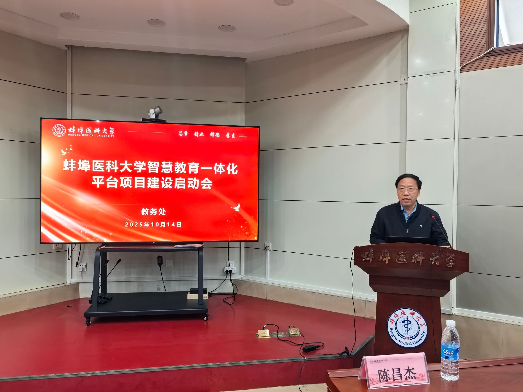 10月14日下午,蚌埠医科大学智慧教育一体化平台项目建设启动会召开。校党委常委、副校长陈昌杰,各二级学院院长、各专业负责人、各专业核心课程课程负责人、“AI+教育”课程负责人及超星公司负责人等参会。
