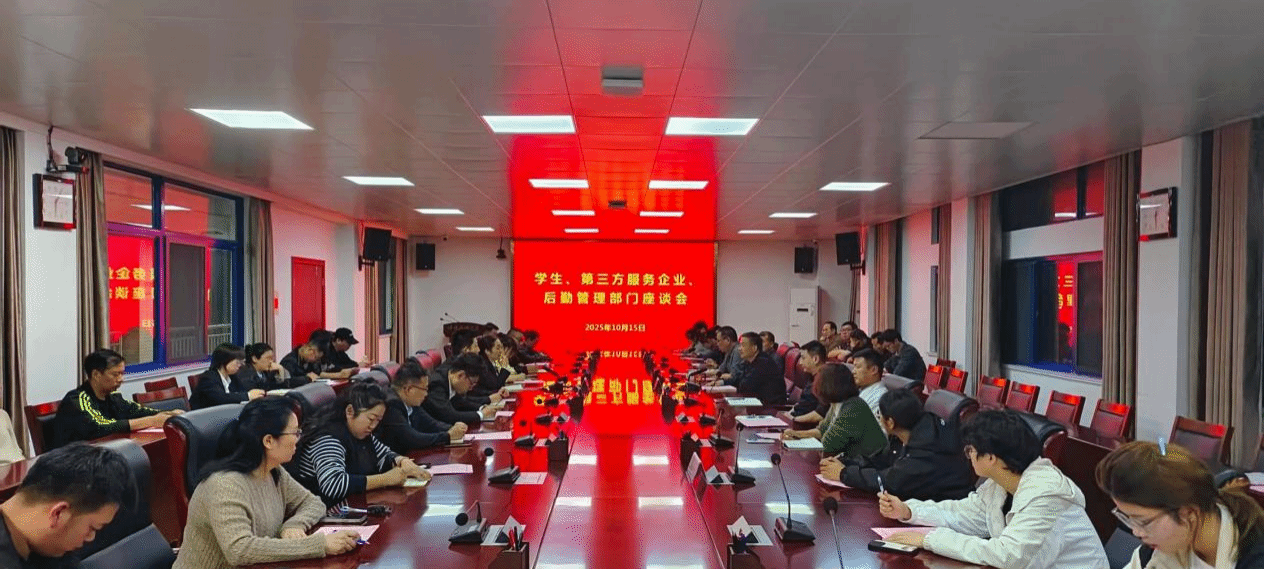 10月15日下午,学校召开2025-2026学年第一次学生、第三方服务企业、后勤管理部门座谈会。校党委常委、副校长姚强出席会议并讲话。学生处、保卫处、校团委、后勤管理处及各科室负责人、10名学生代表、驻校第三方服务企业代表参加会议。会议由后勤管理处处长周建军主持。