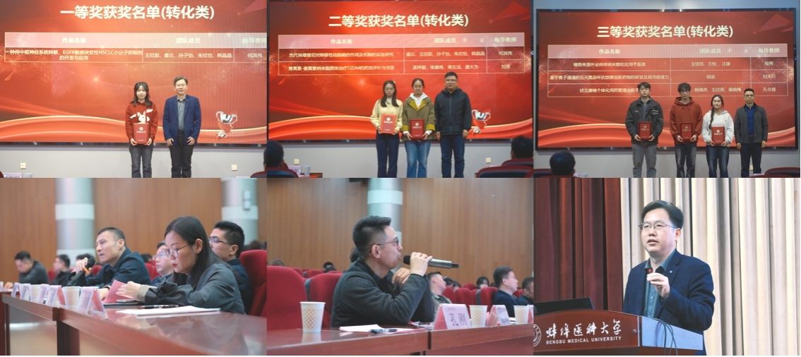 复赛设置“科研创新”与“成果转化”两大赛道,涵盖药物研发、疾病机制探索、智能诊疗技术等多个前沿方向。各参赛团队通过精心准备的PPT,在有限时间内清晰阐述项目的研究背景、创新亮点、技术路径与发展前景,全面展现项目的科学性与可行性。面对评委的专业提问,选手们思路清晰、对答如流,展现出扎实的学术功底与出色的综合能力,赢得现场阵阵掌声。经激烈角逐与公正评审,两大赛道分别评选出一、二、三等奖。
