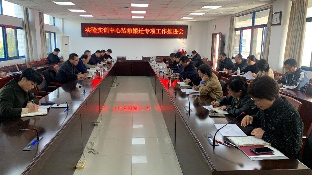 会议听取了关于实验实训中心装修搬迁方案、进展情况以及存在的问题汇报。相关职能部门对政策进行了解读,对工作进行了安排。教务处部署了下阶段装修搬迁推进工作。与会人员就优化工作方案、加强各部门协同、存在问题等方面进行了深入交流,并明确了下一阶段工作重点。