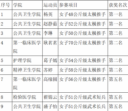 蚌埠医科大学2025年中国大学生太极推手、长短兵锦标赛战绩榜