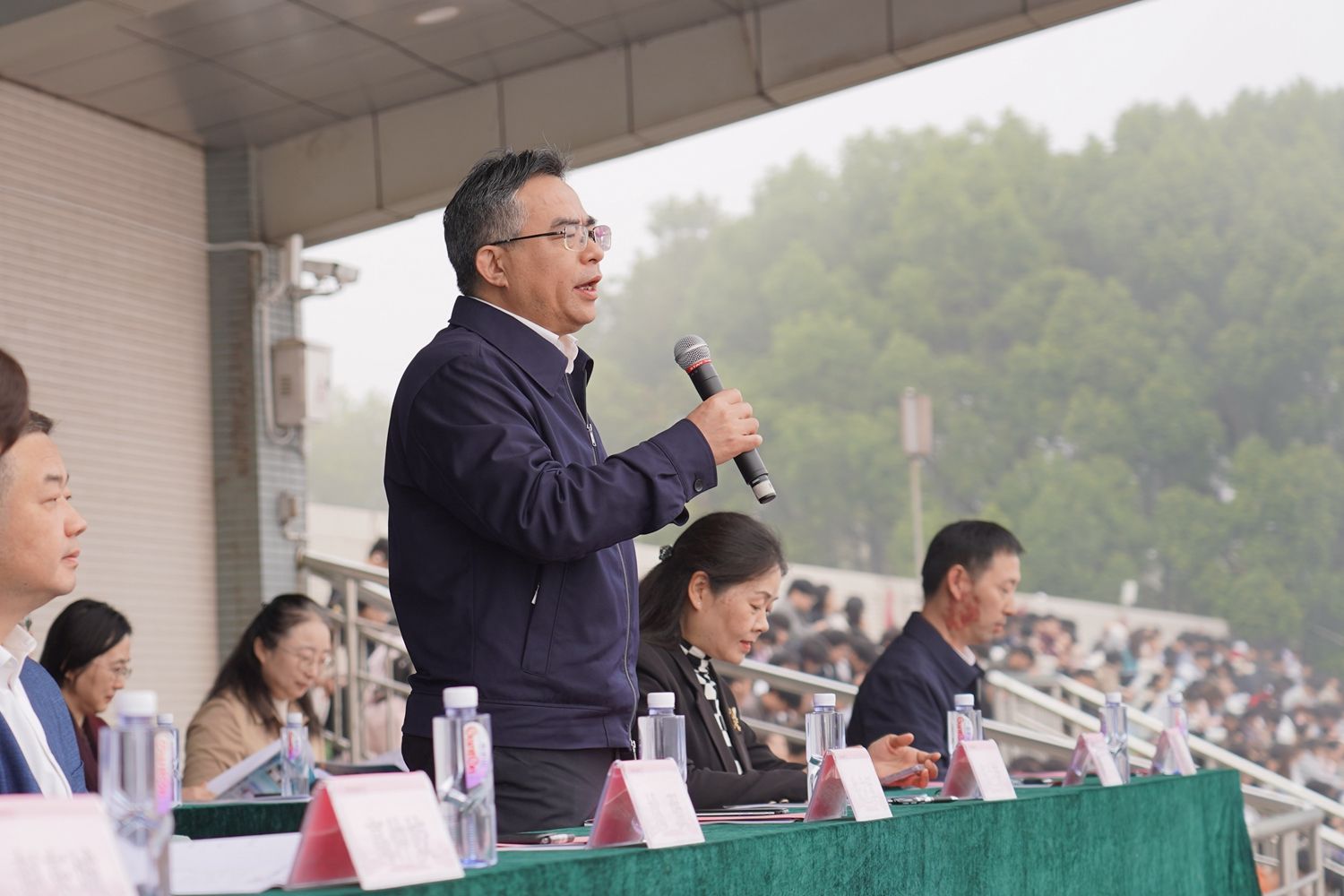 校党委副书记、校长郑兰荣在致辞中首先代表学校对运动会的顺利举行表示热烈祝贺,向参加运动会的全体运动员表示诚挚问候,向辛勤工作的裁判员、工作人员、志愿者表示衷心感谢!体育兴则国家兴、民族兴。郑兰荣表示,学校体育工作紧密围绕立德树人根本任务,深入推进体育俱乐部制改革,全面践行“教会 勤练 常赛”六字方针,持续完善“一体两翼三融合”体育育人体系,努力培养新时代德智体美劳全面发展的社会主义建设者和接班人。希望全体运动员发扬“更高、更快、更强”的奥林匹克精神,顽强拼搏,赛出风格、赛出水平;全体裁判员全心投入,公正执法,营造公平公正的竞赛环境;全体工作人员满怀热情,为体育盛会做好保障。