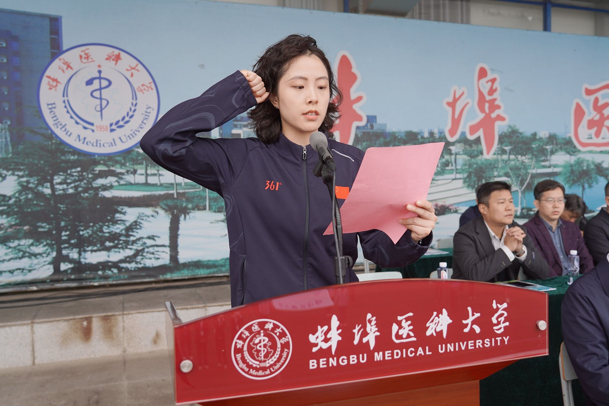 开幕式上,口腔医学院施子阳同学代表全体运动员宣誓,表示将在比赛中严格遵守比赛规则,听从指挥,服从裁判,公平竞争,奋力拼搏,争创佳绩。随后,人文与健康学院孙敏清老师代表裁判员宣誓,表示将恪守体育职业道德,尊重参赛选手,秉持精益求精的态度,认真履行裁判员职责,坚决服从大会指挥,严格遵守裁判员纪律和竞赛规则,文明裁判、严肃认真,为运动员创造佳绩提供良好的条件。