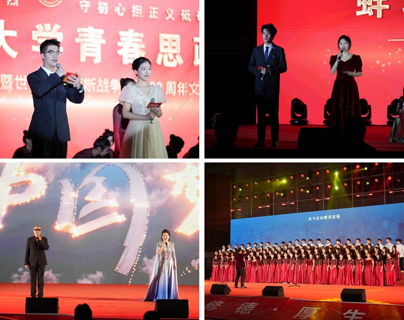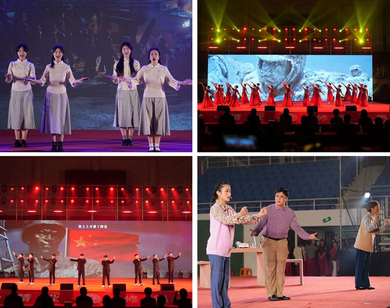 11月12日晚,青春思政课——纪念中国人民抗日战争暨世界反法西斯战争胜利80周年文艺汇演在龙湖体育馆上演。本次演出以“铭国耻思忧患缅怀先烈 守初心担正义砥砺前行”为主题,形式多样,内容丰富。校领导朱立军、郑兰荣、姚强、刘浩、高仲姣与全校3000余名师生共同观看了演出。
