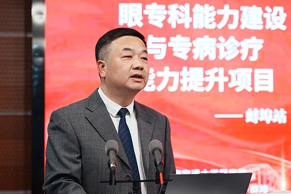 范先群在发言中向来到现场的领导专家致以热烈欢迎,对蚌埠医科大学及其第二附属医院的辛勤筹备表达了谢意。他指出,当前国家正深入推进“健康中国”战略,公立医院正经历从“规模扩张”到“高质量发展”的历史性转型,如何提升医疗服务专业化、精准化、体系化水平,让优质医疗资源更公平可及,成为医院深化体制机制改革的核心任务。眼科学作为技术迭代快、创新活跃的医学领域,肩负着特殊使命,视觉健康贯穿国民全生命周期,直接关系亿万群众的生活质量与幸福获得感。他希望通过各位专家学者的思维碰撞与专科经验分享,探讨出兼具学术价值与实践意义的成果,为全国眼专科管理者提供决策支撑与行动指南。