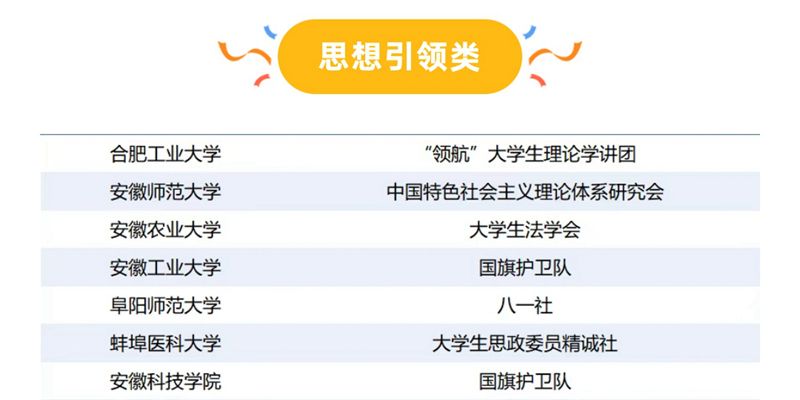 近日,共青团安徽省委、安徽省学生联合会公布了2024-2025学年安徽省高校“活力社团”名单。经学校推荐、材料评审、评审答辩等环节,我校大学生思政委员精诚社、大学生医学探索研究会分别在思想引领类和学术科技类两个领域脱颖而出,成功入选省级“活力社团”。