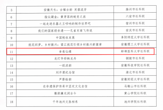 近日,安徽省第三届“人文社科之光”社科普及短视频大赛获奖名单揭晓。我校公共卫生学院2023级研究生孙钰惠、户晓婷、田溪同学创作的作品《食愈仙缘》(指导教师:刘华青)凭借鲜明的主题与生动的表达,获大赛优秀奖。
