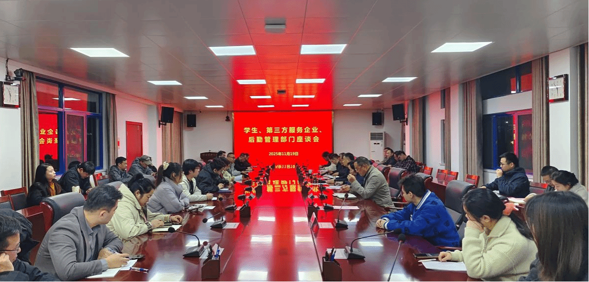 11月19日下午,学校召开2025-2026学年第二次学生、第三方服务企业、后勤管理部门座谈会。校党委常委、副校长姚强,学生处、保卫处、校团委、网络信息中心、后勤管理处及各科室负责人、9名学生代表、驻校第三方服务企业代表参加会议。