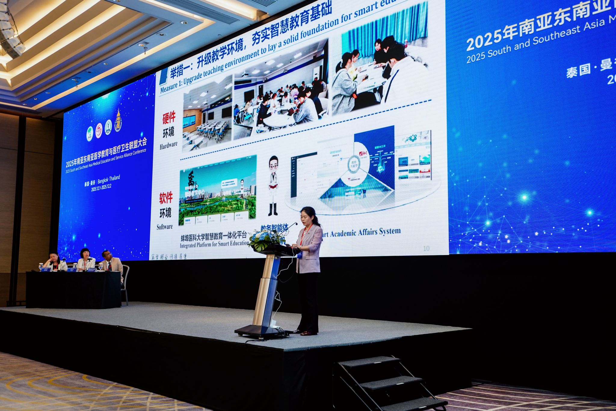 12月1日至2日,“2025年南亚东南亚医学教育与医疗卫生联盟大会”在泰国曼谷举行,来自泰国、孟加拉国、巴基斯坦、缅甸及中国的19所联盟成员单位的100余位代表齐聚一堂,共商区域医学合作发展大计。校党委副书记、校长郑兰荣与教务处及国际合作与交流处负责人应邀参加大会。