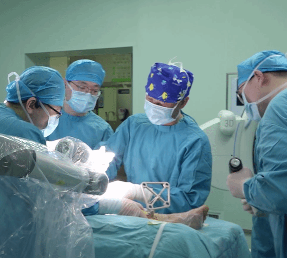 官建中坚持"四带"原则:带技术、带团队、带方案、带信心。在皖北一家县级医院的一例骨盆骨折微创手术中,他手把手教基层医生调整机器角度直到显示屏出现完美影像,仔细交代术中注意事项。