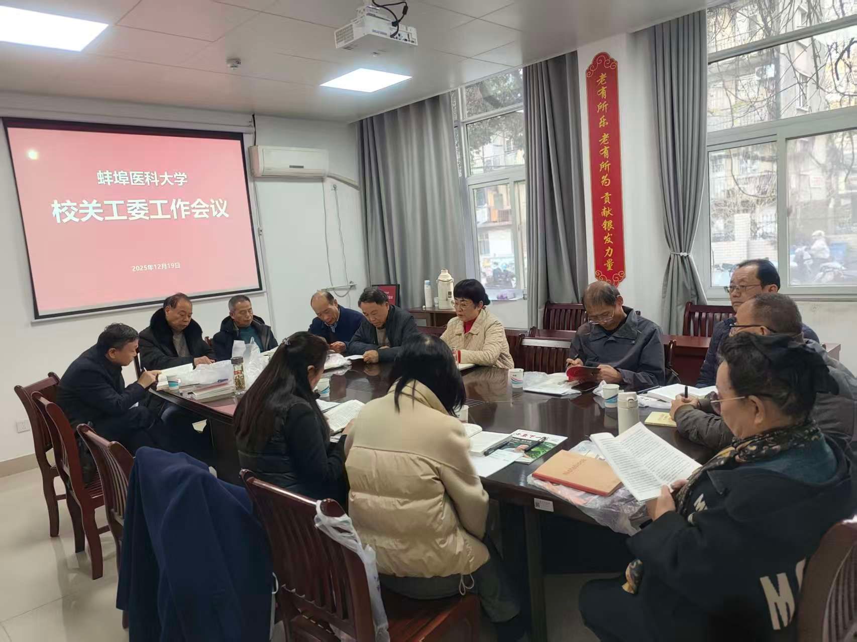 会议指出,要以习近平新时代中国特色社会主义思想为指导,深入学习贯彻党的二十届四中全会精神和教育部关工委、安徽省教育系统关工委的要求,围绕学校中心工作,不断完善校关工委工作机制,使关工委工作更加贴近实际、贴近学生,助力青年学生成长成才。要坚持关工品牌活动,夯实青年师生关爱教育,加强关工委队伍自身建设,紧扣“五好”关工委建设目标开展工作谋划。要坚持立德树人根本任务,统一思想,扎实推进学校关工委优质化建设,推动学校关心下一代工作高质量发展,为建设国内一流国际知名高水平医科大学贡献关工力量。