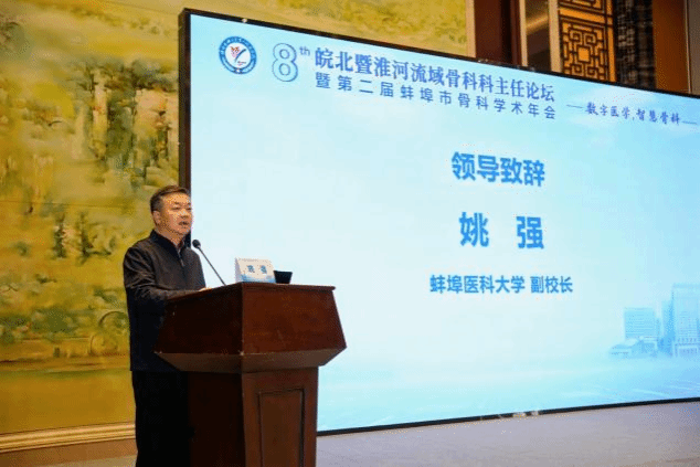 姚强介绍了蚌埠医科大学高质量发展情况,他强调论坛创办八年来,始终聚焦骨科前沿动态与临床难题,已成为皖北及淮河流域骨科同仁的年度盛会,希望通过论坛深入交流与案例研讨,进一步推动区域骨科协同发展与人才共育,助力优质医疗资源下沉到基层。