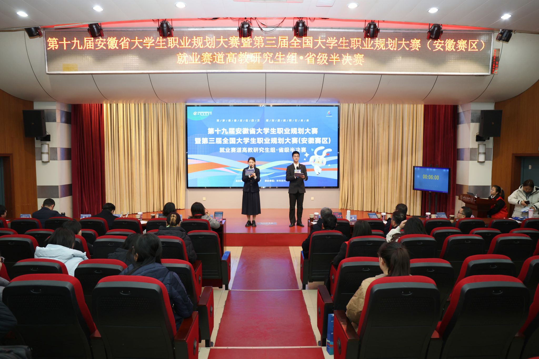 为深入贯彻党中央、国务院关于高校毕业生就业工作的决策部署,提升安徽省高校生涯规划与就业指导工作水平,引导大学生群体树立科学职业观、增强职业规划能力,12月26日,第十九届安徽省大学生职业规划大赛暨第三届全国大学生职业规划大赛(安徽赛区)就业赛道高教研究生组・省级半决赛在我校成功举办。省大中专毕业生就业指导中心主任张秋田,校党委常委、副校长姚强到场指导。