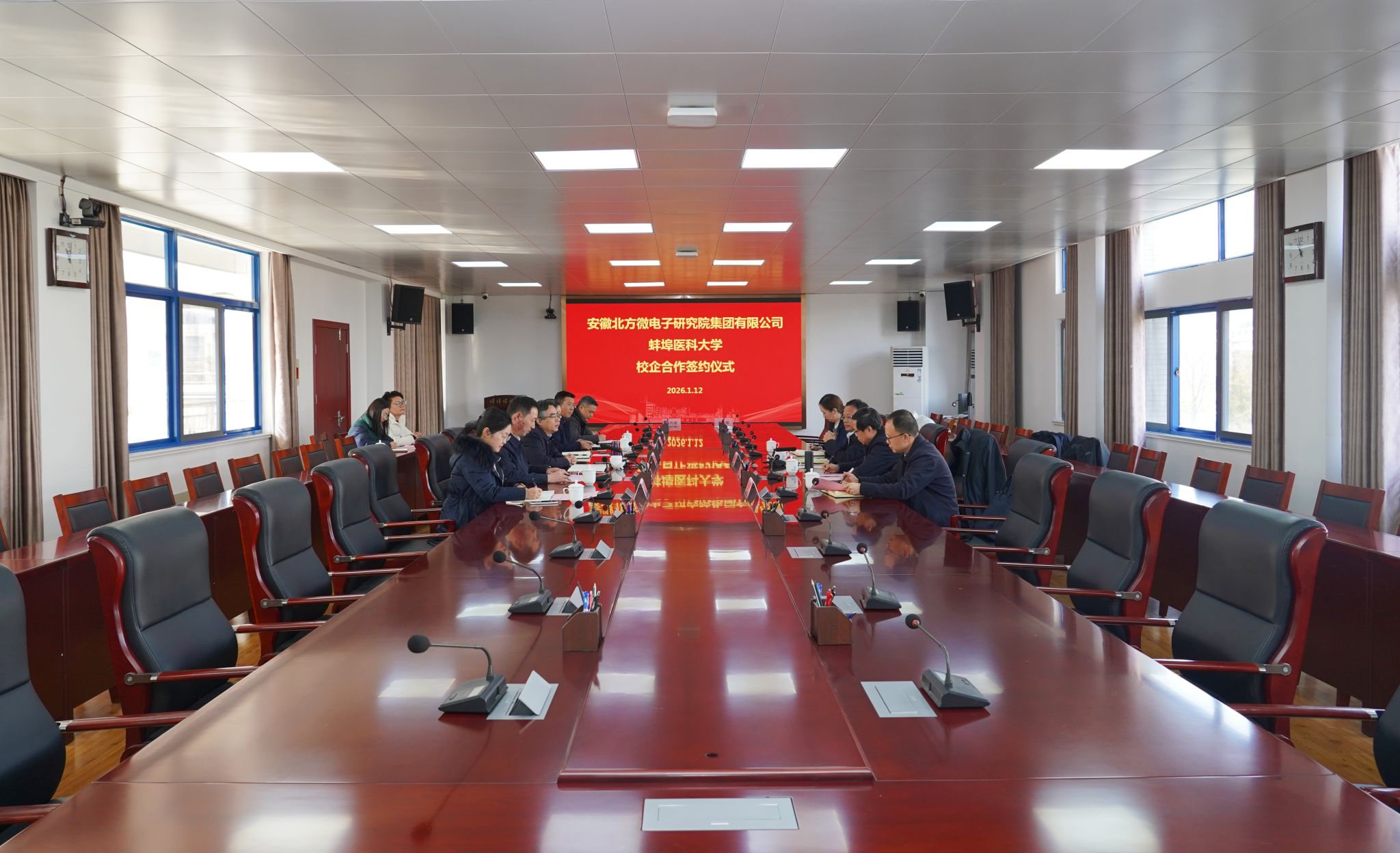 1月12日上午,安徽北方微电子研究院集团有限公司董事长陈丙根、安徽省智能传感器产业创新研究院副院长王世和一行来校交流座谈。会上,我校与安徽北方微电子研究院集团有限公司正式签署战略合作协议。校领导朱立军、郑兰荣、刘浩,党委(校长)办公室、科研处、社会合作处等相关部门负责人参加座谈。