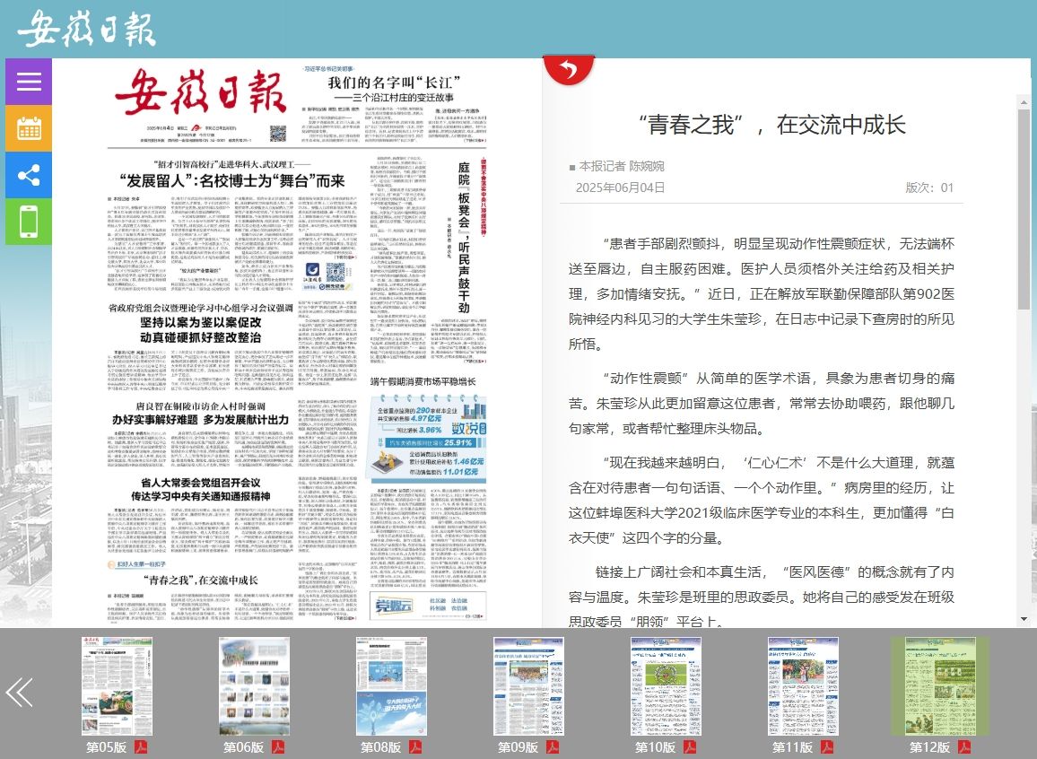 创新思政实践教学。《安徽日报》头版《扣好人生第一粒扣子》专栏,以《“青春之我” 在交流中成长》为题,以思政委员朱莹珍的实习经历为切入点,全景式展现了学校思政建设的成就,对学校思政工作开展情况进行了专题报道。一年内《安徽日报》再次报道我校思政建设,还有多家媒体报道了学校以“改革赋能现代化 巧手绘就新征程”为主题开展的创意思政课实践教学,充分展现了我校积极探索全面推进思政课建设的有效路径及取得的成效。