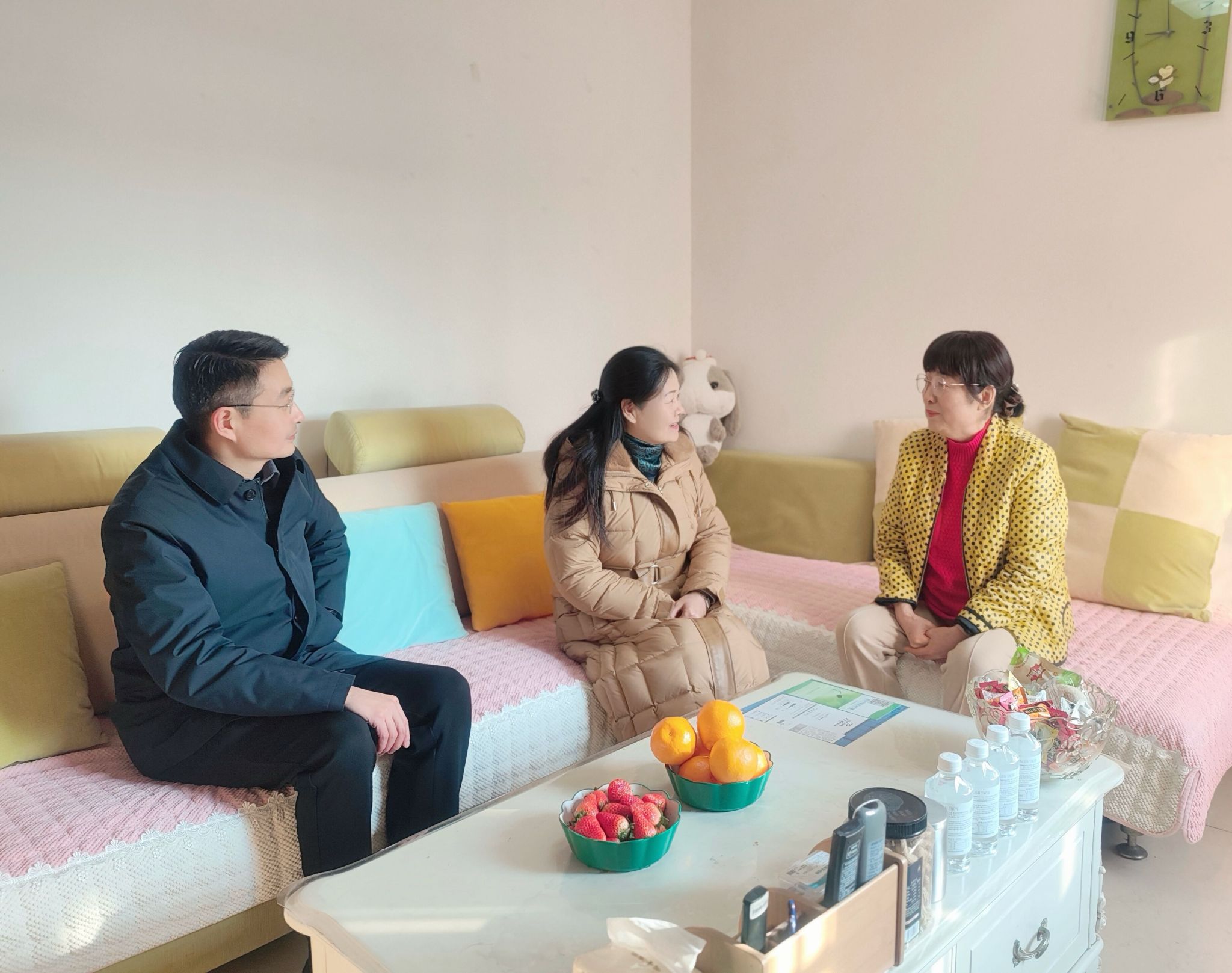 慰问中,校领导们带着深情、扛着责任,聚焦“政策落实有力度、诉求响应有速度、困难救助有温度”,倾听心声、解决问题。朱立军、郑兰荣登门看望离休老干部和老党员代表,详细通报学校2025年学科建设、科研创新、附属医院高质量发展等重点工作进展,认真倾听老同志对学校事业发展的真知灼见,悉心叮嘱老同志们保重身体、安享晚年,感谢他们为蚌医建设发展奠定的坚实基础和毕生奉献,嘱咐大家说:“学校的发展始终牵挂着老同志们的心,你们的经验智慧是学校的宝贵财富,希望大家继续为学校高质量发展建言献策。”