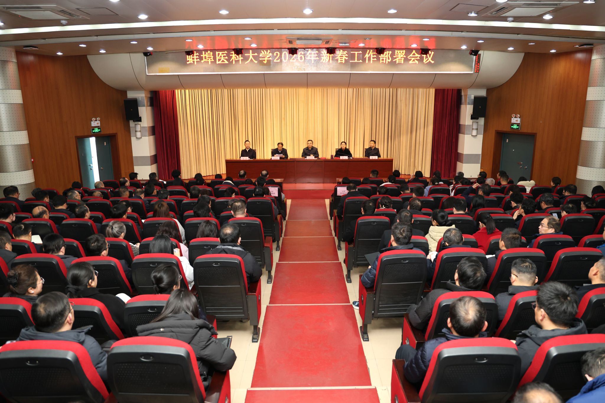 校党委副书记、校长郑兰荣全面盘点了寒假期间的各项工作,指出寒假工作有进步、有突破、有亮点,更有章法、有力度、有效果,为一季度“开门红”打下了基础。她强调,对标教育强国、健康中国战略要求,以及习近平总书记关于高等教育的重要论述,学校客观存在着差距。全校上下必须正视问题、迎难而上,以更大的力度推动学校高质量发展。就2026年工作部署,郑兰荣要求,要聚焦人才培养、科学研究、开放办学、服务地方、附属医院发展五大重点工作,全力攻坚突破。坚持立德树人,构筑高质量人才培养体系;强化内涵建设,提升科学研究与学科竞争力;拓展开放办学格局,提升国际化交流合作水平;主动服务地方,提升社会服务贡献能级;深化“院院合一”,推动附属医院高质量发展。全校上下要把思想和行动统一到学校党委行政的部署上来,一项一项抓落实,一件一件求突破,心往一处想、劲往一处使,以更加务实的作风、更加有力的举措,扎实推进年度各项工作,为建成高水平医科大学而努力奋斗!