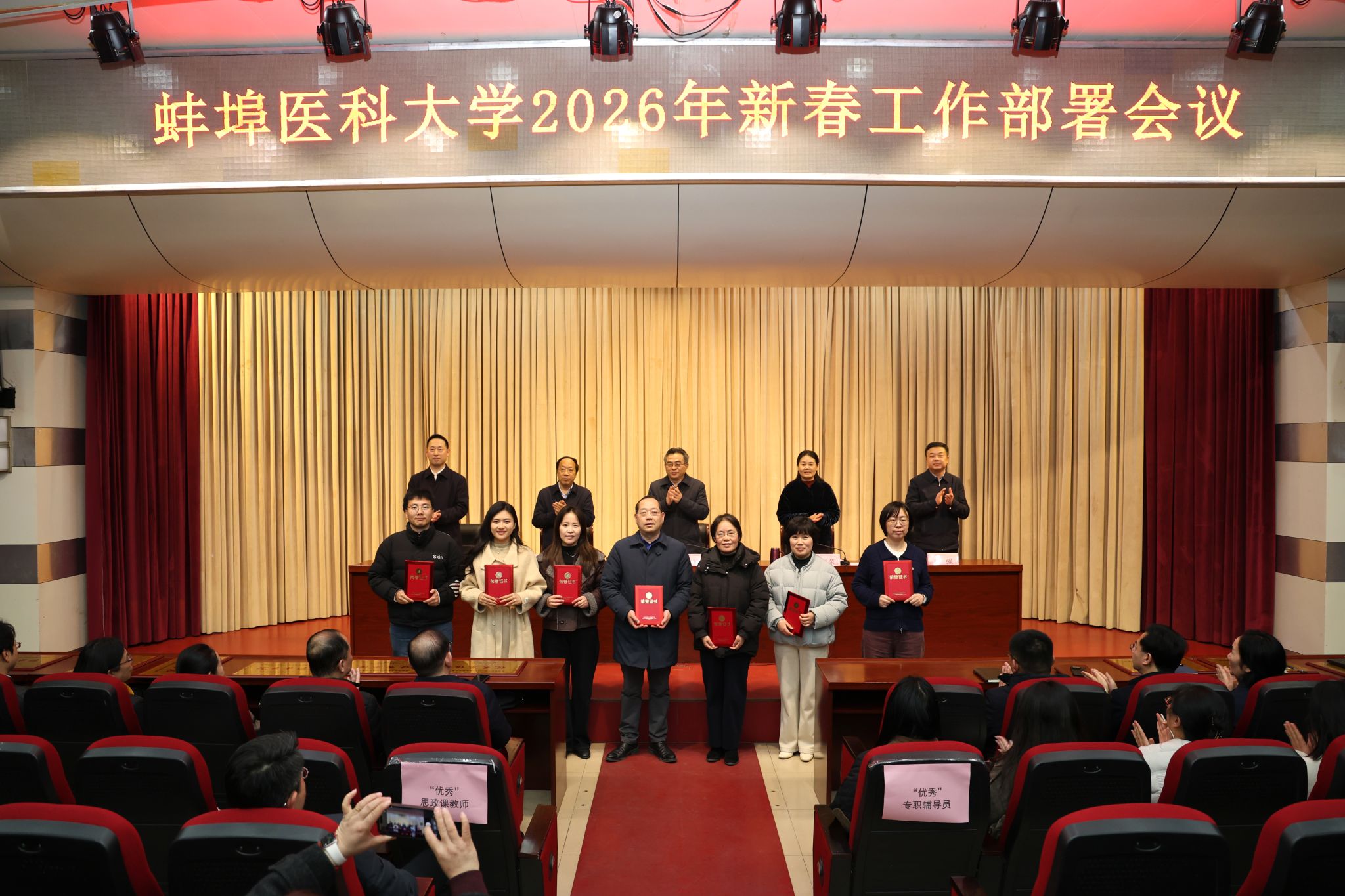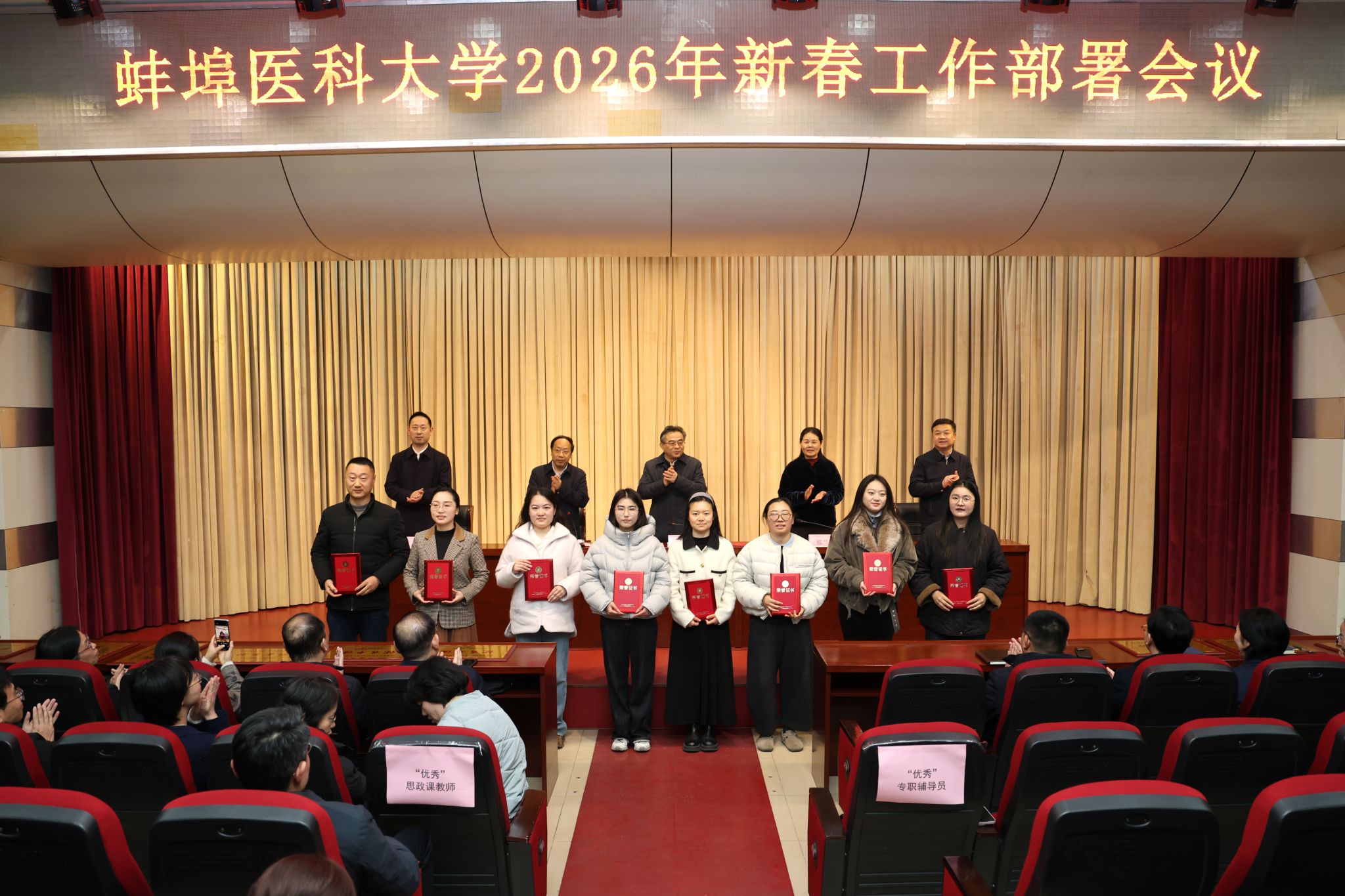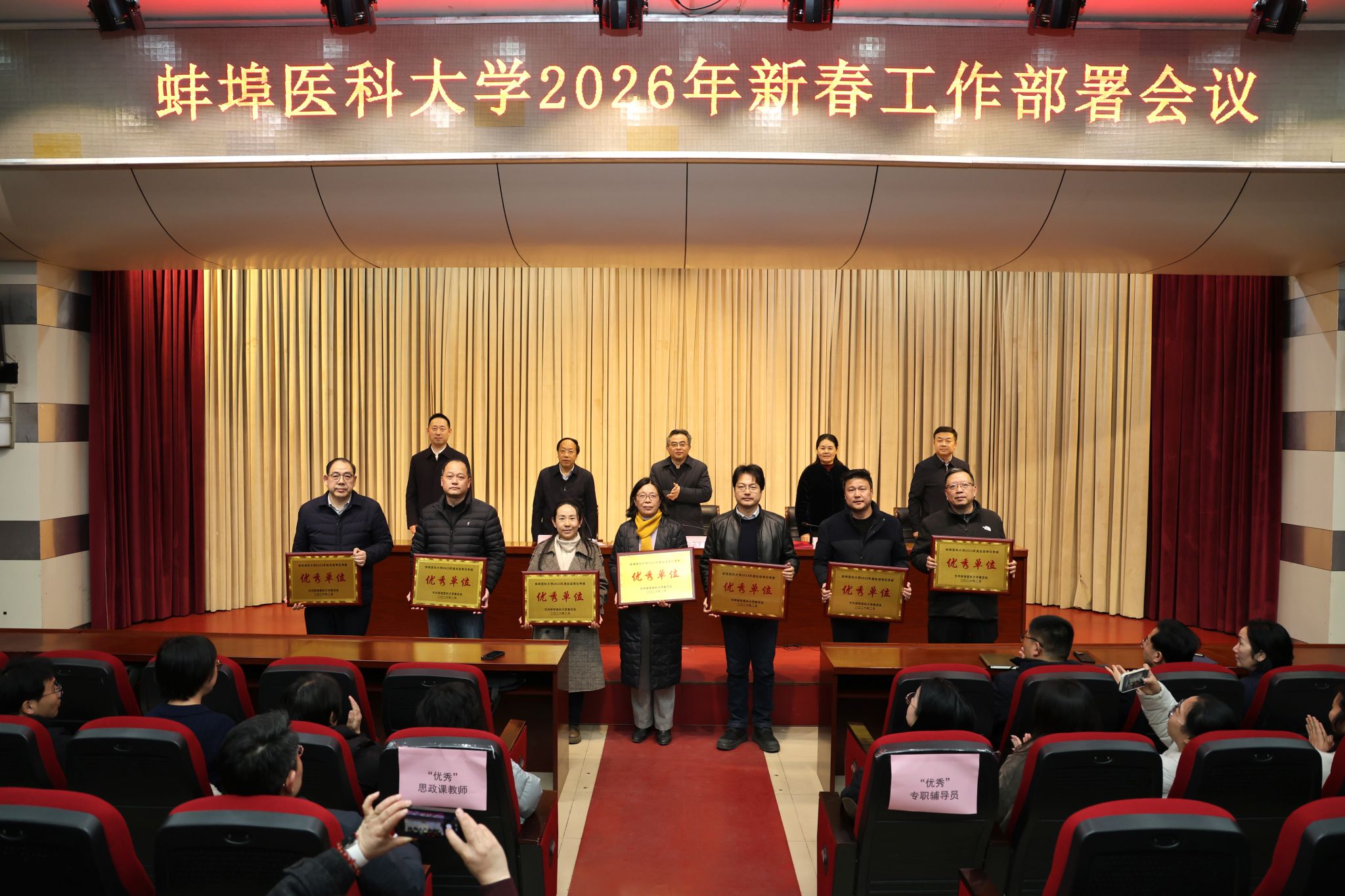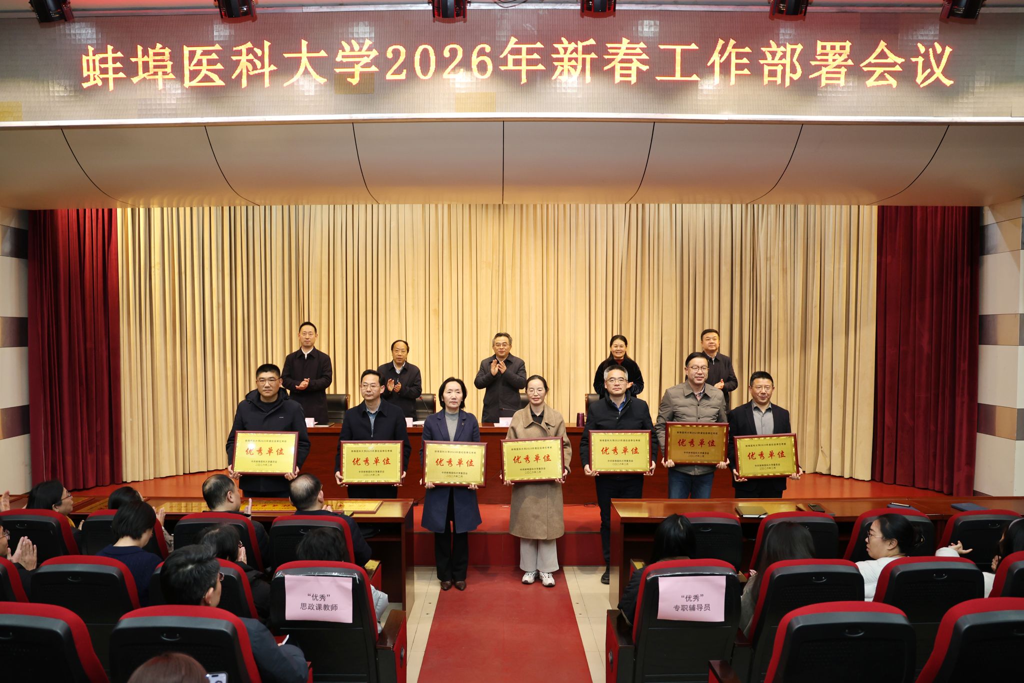 会议对获得考核优秀的14个处级单位、8名专职辅导员、7名思政课教师进行表彰,营造了对标先进、比学赶超的良好氛围。