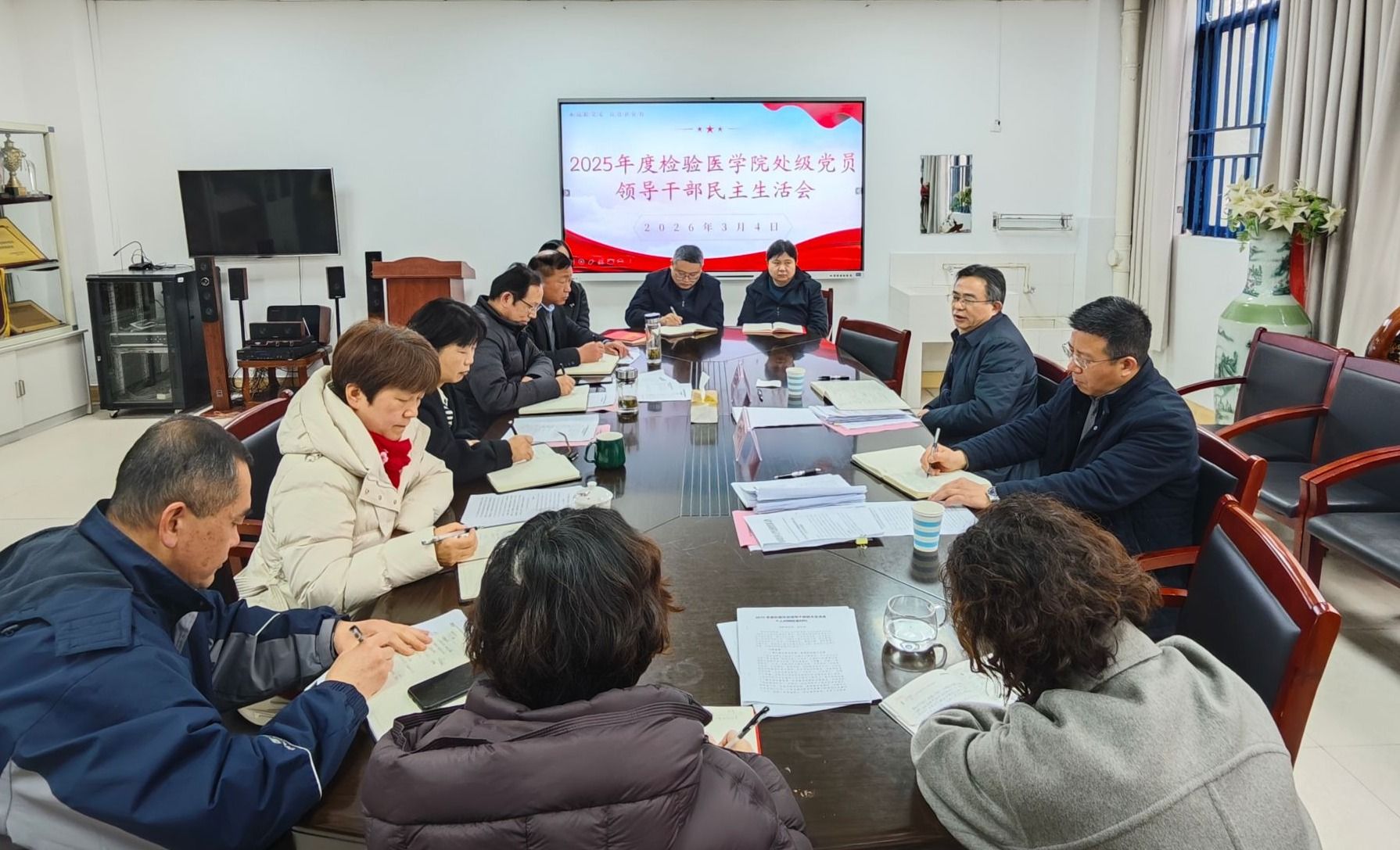3月4日上午,检验医学院召开2025年度处级党员领导干部民主生活会,学校党委书记朱立军、党校办主任熊韵波到会督导。检验医学院党员处级干部、学院党委委员、非党员处级干部及党员教师代表参加会议,检验医学院党委书记方强主持。
