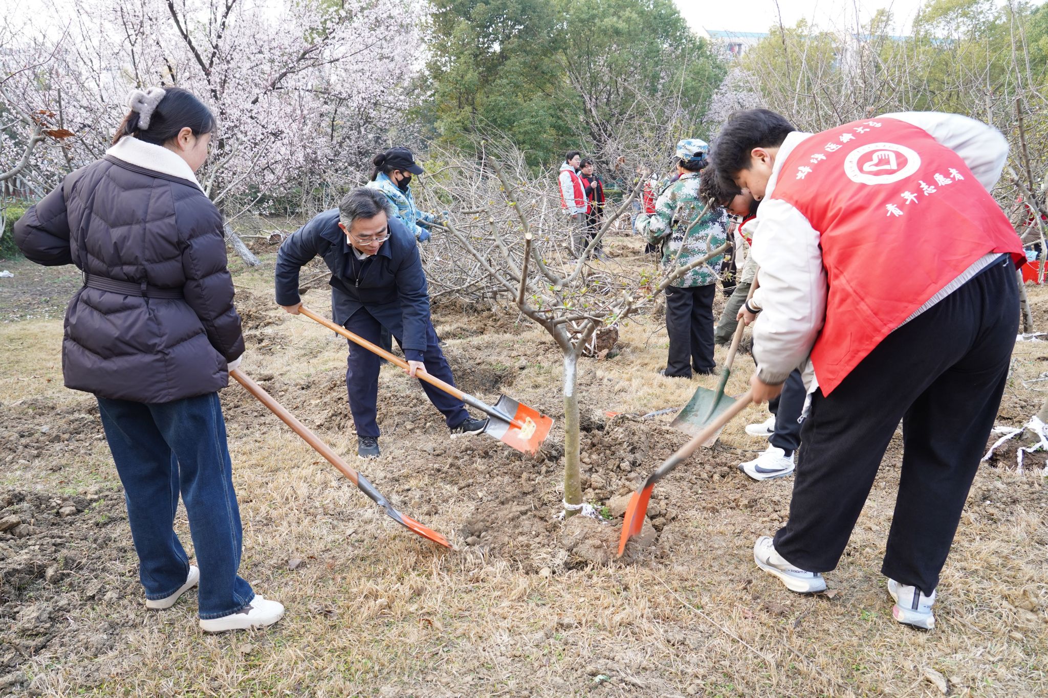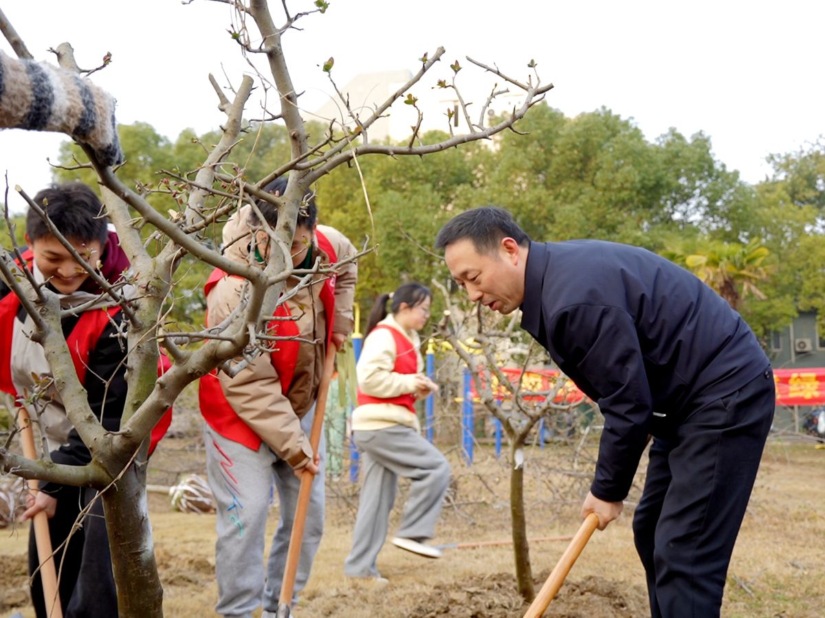 春回大地万物苏,植树添绿正当时。3月12日上午,学校开展“植树节”义务植树志愿服务主题团日活动。校领导朱立军、郑兰荣、陈昌杰、姚强、刘浩与20余名学生志愿者同植校园新绿、共赴春日之约,以实际行动弘扬“奉献、友爱、互助、进步”的志愿服务精神。