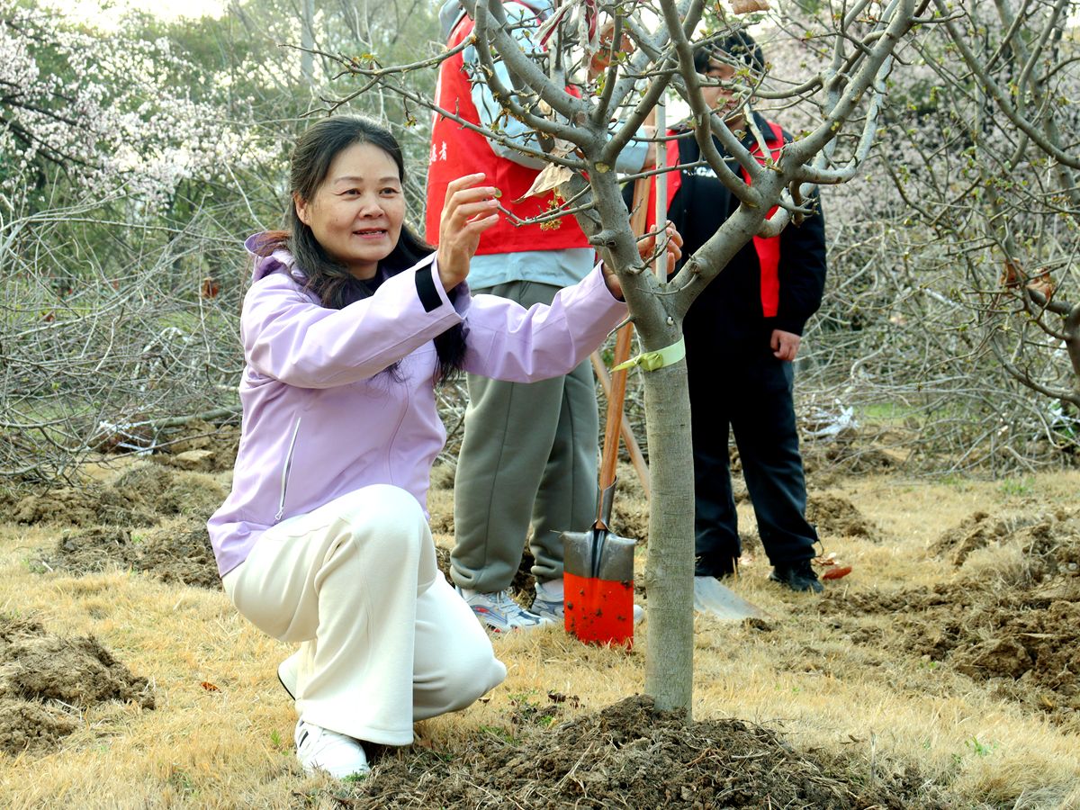 应志愿者倡议,校领导还与师生代表一同为新栽苗木系上绿色丝带。一株株新苗亭亭玉立、生机盎然,为校园增添了蓬勃朝气,春风里飘扬的丝带,承载着全校师生共建绿色校园、共护生态家园的美好期盼。