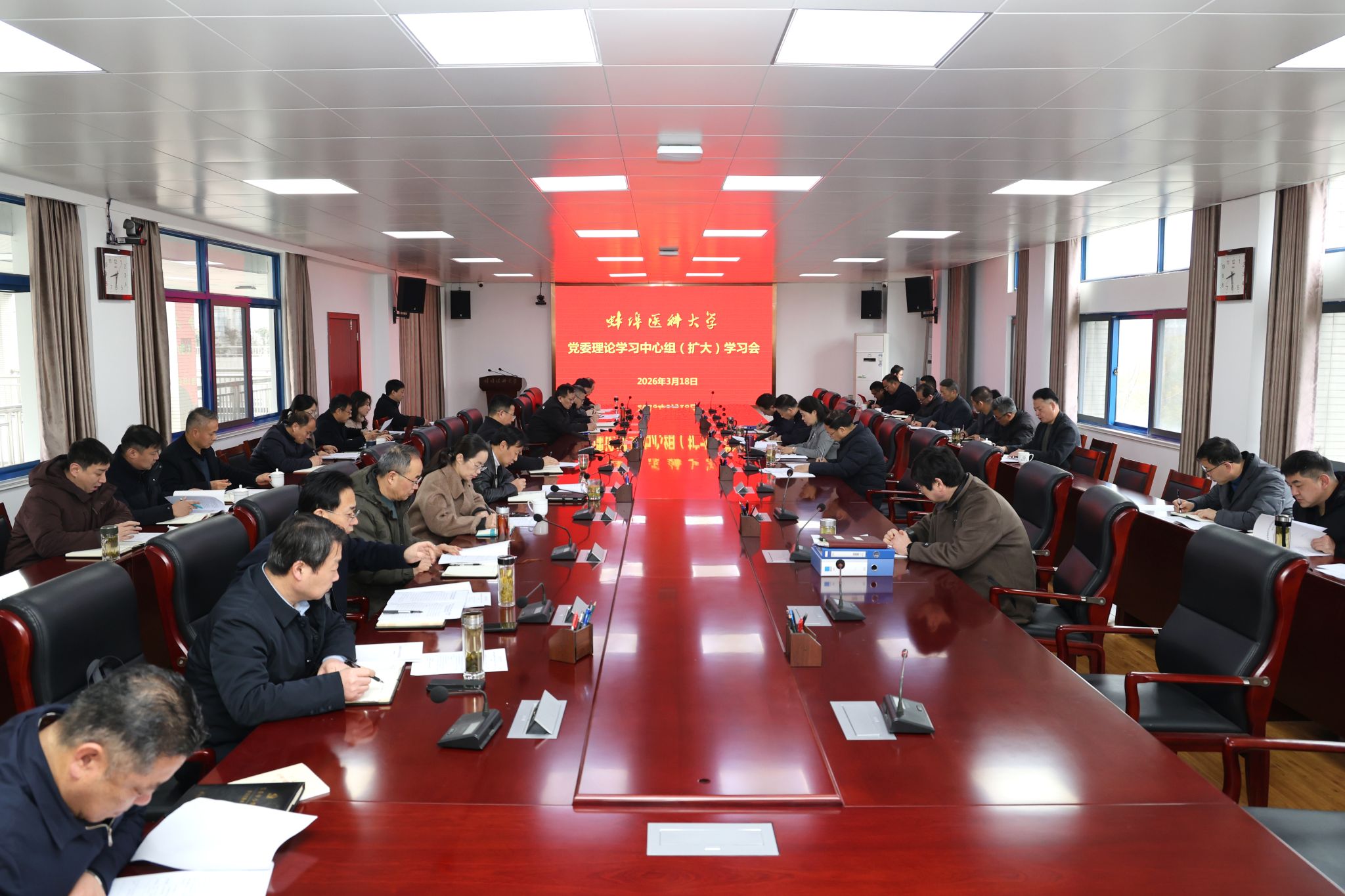 3月18日上午,学校召开党委理论学习中心组(扩大)学习会,传达学习全国两会精神。校党委副书记、校长郑兰荣主持会议,校领导陈昌杰、姚强、刘浩,校党委理论学习中心组成员、二级党组织及职能部门负责人参加。