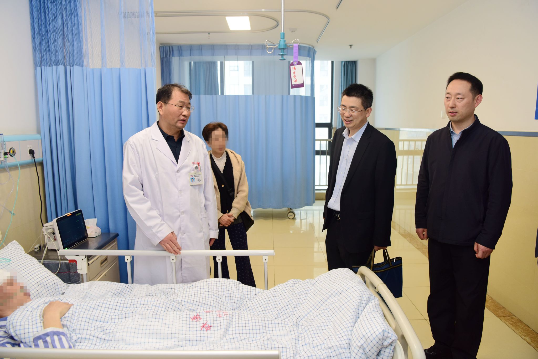 在脑机接口病房,丁胡送一行看望了刚接受半侵入式脑机接口手术的患者,详细了解患者的术后恢复情况、治疗体验及康复进展。