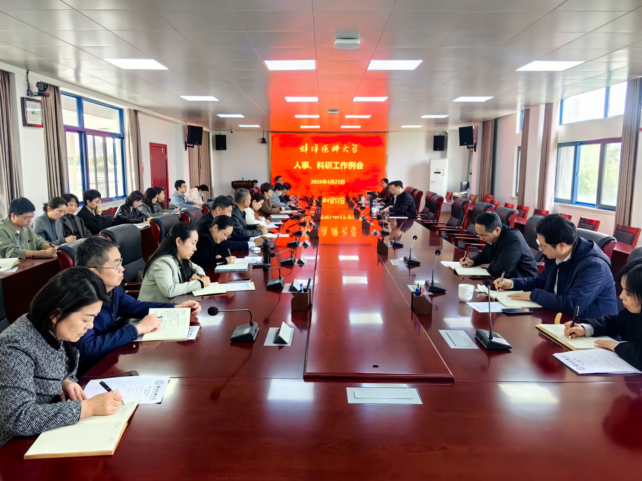 4月23日,学校召开2025-2026学年第二学期第一次人事、科研工作例会,校党委常委、副校长刘浩主持会议,人事处、科研处及各二级学院、附属医院、科研平台负责人参加。