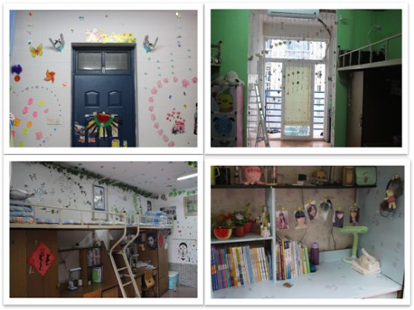此次寝室美化大赛受到广大同学的积极响应。他们用彩纸,纸杯,塑料瓶,易拉罐等简易材料,加工改造装扮寝室,为寝室增添了一抹“环保绿”。公共卫生学院学生会成员和生活委员担任比赛评委,公平公正地对各个寝室的美化和卫生情况进行打分。在评比过程中,参赛同学热情洋溢地介绍寝室名称,设计风格和创意来源,介绍了精美的“漂流瓶”的用途是为了交流内心的小故事,拉近距离;展示了寝室旅游合照并介绍旅途中发生的有趣的故事。本次参赛寝室融入了绿色,环保,创新,DIY等元素,获得评委们的一致好评。经过激烈的角逐,最终评出一等奖一名,二等奖两名,三等奖三名以及若干优胜奖。