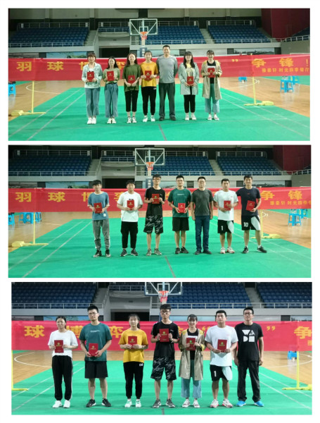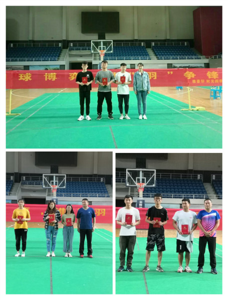 经过角逐,男单冠亚季军分别被程兆宁、王聪、孟冬冬同学摘得;女单冠亚季军则花落王雪、李贺侠、张二云;男双前三名分别是程兆宁和胡子豪、孟冬冬和殷世家、李智博和路广先同学;女双冠亚季军分别是严成玉和张二云、李贺侠和李钇洁、丰清予和刘春燕;混双冠亚季军分别被程兆宁和张二云、胡子豪和陈祥祥、孟冬冬和丰清予同学夺得。最佳班级分别为17级一班、二班和18级实验班。体育艺术部各位老师及18年级主任汤小勇、杨晓阳老师分别为以上获胜选手与班级代表颁奖,并进行了合影留念。