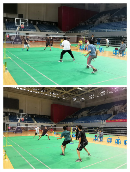 本次比赛共分为男单、女单、男双、女双和混双五项赛事。赛前,体育艺术部史友国老师为选手们进行了动作指导并阐述了羽毛球运动的魅力之处。走进比赛现场,同学们步伐灵活、动作敏捷、身姿飒爽。为了班级和个人的荣誉,每位参赛选手都竭尽全力、奋勇拼搏。他们时而分离扣杀、时而网前拦截、时而后场吊球,每招每式皆精彩。激烈的比赛引来了许多同学的观看,一时间,掌声、喝彩、欢笑、呐喊声响成一片,分外热闹。比赛间隙,年级主任汤小勇前来为选手们加油助威,并进行了师生友谊表演赛。