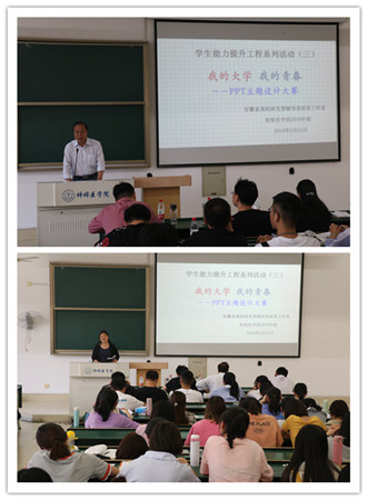 为提升学生的PPT制作能力,总结过往三年的青春岁月,规划即将开始的实习生活,安徽省高校研究型辅导员培育工作室和检验医学院2016年级联合主办的“我的大学 我的青春”PPT设计决赛于5月22日在教学楼403教室顺利开展。大赛评委由检验医学院党总支书记张文敏老师、检验医学院院长李玉云教授、马克思主义学院贾先果副教授、年级主任韩晓东老师和乔凯博士担任,2016年级全体学生参加了此次活动。