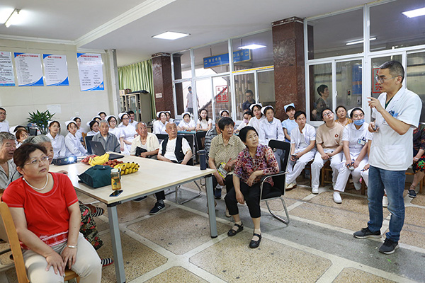 6月11日下午,二附院神经内科的医生办公室里座无虚席,一场关于脑卒中知识的健康教育讲座正在进行中,许多正在接受治疗或处于康复期的中老年患者,在家属的陪同下前来听讲,此外,来自全科医学科、神经外科、脑卒中中心与康复医学科的护理骨干也参加了学习,期间还与患者们展开了互动。