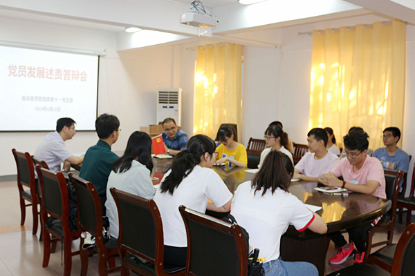 为贯彻落实《中国共产党党员教育管理工作条例》,更好地发挥组织育人作用,切实提高党员队伍建设质量,临床医学院党委第十一党支部创新党建工作思路,于6月10日举行了党员发展谈话述责答辩会。会议由支部书记主持,临床医学院党委副书记史永庆作为发展谈话人莅会,年级主要班团干部和入党积极分子代表到场观摩学习。