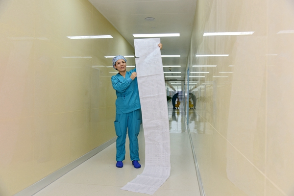 手术室护士要确保每天上百台手术所需的药品物质、医疗器械到位,麻醉医生要面对上百台手术术前病例讨论,手术间的麻醉机,监护仪及药品准备。“每天天不亮就来上班,天黑才能下班是手术室工作的常态”手术室护士长付琴说道,“搬迁到新的手术室后,事情特别多,每天都有上百台的手术,由于需要沟通协调的事情太多,我每天带两部手机电量都不够用,但是看到每台手术都成功完成感觉一切都是值得的。”