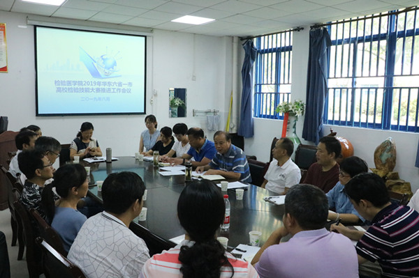 8月20日上午,检验医学院召开华东六省一市高等院校检验技术专业技能大赛培训工作推进会。教务处王震寰处长、检验医学院负责人、全体指导老师、辅导员及比赛选手参加了会议。会议由李玉云院长主持。