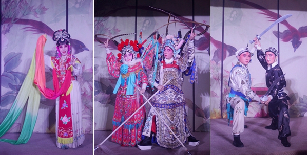 演出在京剧《天女散花》的精彩演出中拉开帷幕,演员以婀娜的身姿,绚丽的彩绸,展现出天女散花时的落英缤纷;京剧《卖水》是一出花旦应工戏,集中展现了花旦表的俏、媚、灵等特点;京剧《穆柯寨》以敏捷的身段和武打,展现了穆桂英和杨宗保初次见面时的爱恋与羞涩;《三岔口》是武戏应工,演员通过程式和虚拟的表演,展示出摸黑开打的紧张与激烈;徽剧《白蛇传·断桥》,人物载歌载舞,表演传神。演员精湛的技艺感染了全场观众,现场掌声雷动,经久不息。