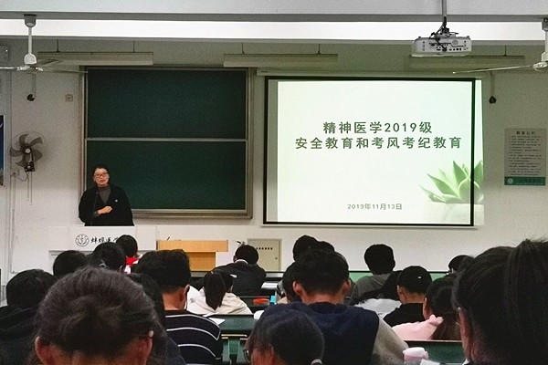 2019年11月13日下午,2019级精神医学专业在理论楼405教室召开学生安全教育和考风考纪建设主题班会,主题班会由年级辅导员潘梦蝶主持。