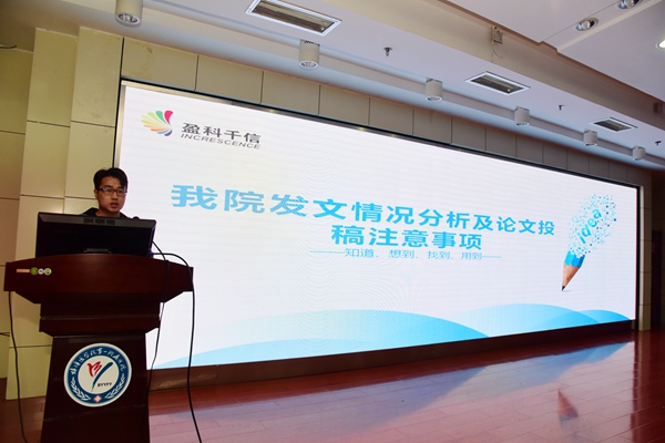 会上,蚌埠医学院图书馆吴福生、北京盈科千信科技有限公司马雪分别就图书馆资源推介及VPN使用、图书馆纸质资源和数字资源、VPN使用说明和演示、如何使用便捷高效的资源及更多服务以及蚌埠医学院第一附属医院近五年发文情况报告、CI发文投稿注意事项等内容进行了精彩的授课。