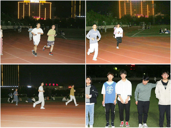 “夜跑”活动于4月15日正式拉开帷幕。活动前期,各班班委为同学们讲解了“夜跑”相关知识及注意事项,并制定“夜跑”计划。“夜跑”以学校塑胶运动场为主场地进行,活动不限装备、不限速度、不限排名。夜幕中,同学们矫健的身影穿梭在校园中,尽情释放着堆积的压力与情绪,同学们矫健的步伐为美丽的校园增添上一道青春亮丽的风景。参加活动的同学纷纷表示受益匪浅,既锻炼了身体,又释放了精神压力,促进了交流,可谓一举多得。