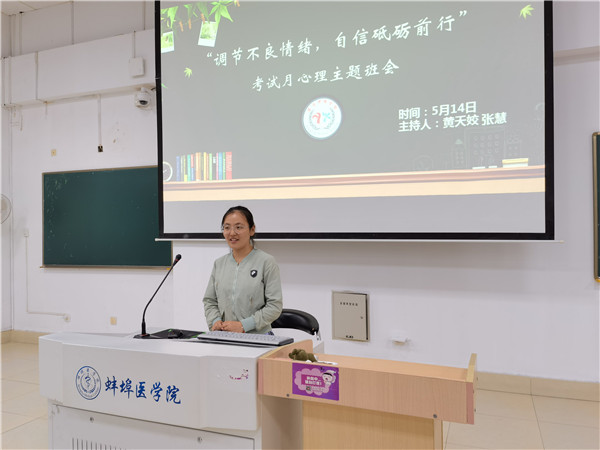 为全面深入贯彻习近平新时代中国特色社会主义思想,切实提高心理育人服务水平,丰富心理健康教育实践内容,加强考试诚信教育,缓解大学生考试月压力,展现饱满自信的大学生风采,提升大学生综合素质,医学影像学院2019级于5月14日举办了“调节不良情绪,自信砥砺前行”心理健康暨考试诚信主题班会系列教育活动。