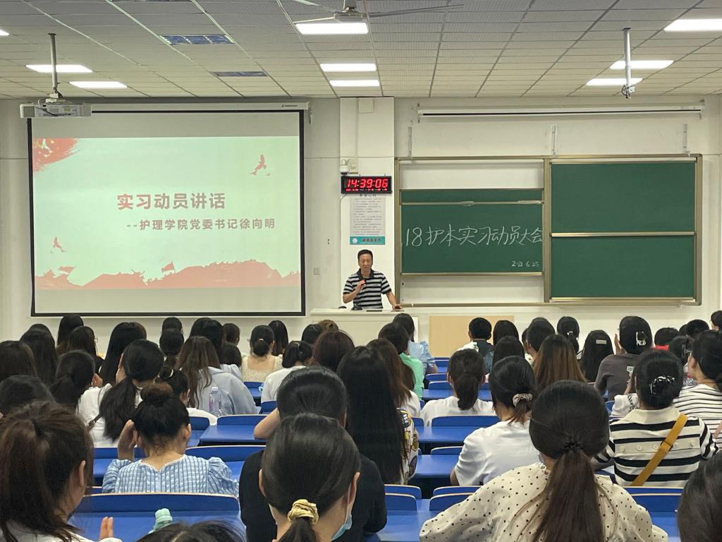 年级主任从实习总体概况,实习进点交接报到,行李托运注意事项,实习期间住院医疗费报销,进点前相关物品准备,实习期间人际交往、为人处世、住宿、管理、安全和环境适应等注意事项,以及实习中期考核各方面进行介绍和提醒,加强同学们对即将到来的实习生活做好心理及行动准备。