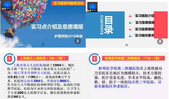 实习是专业教育的必经之路,是理论联系实际,巩固课堂知识的重要载体。实习医院的选择是同学们对自己今后职业方向、地点的一个预选择,为帮助学生合理选择实习医院进行临床实习,年级通过腾讯会议召开专题指导会对各实习点教学、环境、招聘等情况进行介绍,分析意向预调查结果,引导学生根据未来发展目标、求职区域,结合自己的考研与就业规划,合理地填报自己的实习意愿。