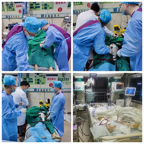 此时此刻,时间就是生命,ECMO团队接到通知后立刻行动起来,将ECMO相关设备运至急诊抢救室,经认真迅速地评估病情后,训练有素的重症医学科ECMO团队立即启动VA-ECMO治疗,利用心脏超声指导ECMO流量优化,间断调低流量,做到最精准的容量管理,经积极处理后患者转危为安。全程仅用时40分钟就成功上机,标志着我院ECPR(体外心肺复苏术)技术又迈上新台阶。