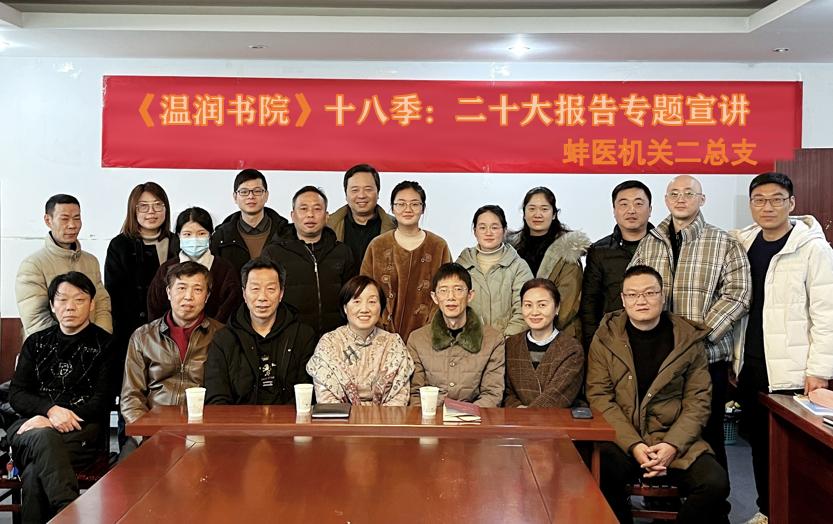 为深入学习贯彻党的二十大精神,1月13日上午,机关二总支书记方珠同志来到第八党支部开展《温润书院》——党的二十大精神专题宣讲活动。总支委员、八支部全体党员及部分群众代表参加宣讲会,宣讲会由支部书记、科研处处长钱中清主持。