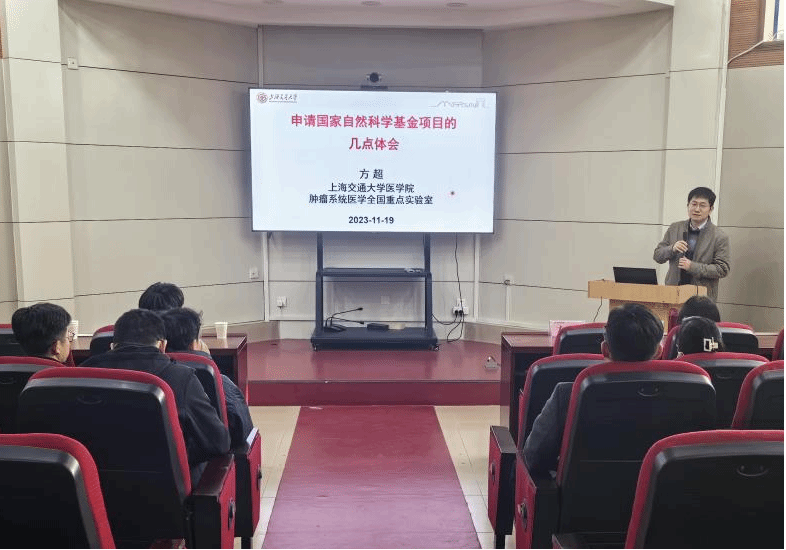 为进一步推动2024年度国家自然科学基金项目申报工作,11月19日上午,药学院邀请上海交通大学医学院方超教授作国家自然科学基金项目申报指导报告。会议由副院长王清清主持,学院部分教师和研究生参加。